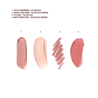 O que é: um conjunto icônico de quatro peças para presentear em qualquer ocasião, com tons Pillow Talk universalmente lisonjeiros em tamanhos completos e de viagem.