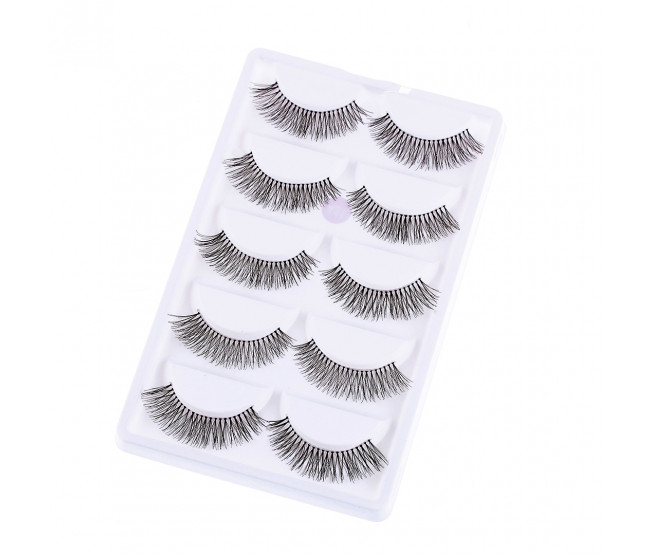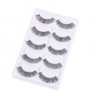 Cartela com 5 pares de cílios, sintéticos, efeito natural.