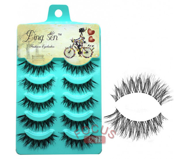 Cartela com 5 pares de cílios, sintéticos, efeito natural.