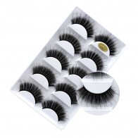 Cartela com 5 pares de cílios 3D, sintéticos, efeito natural.