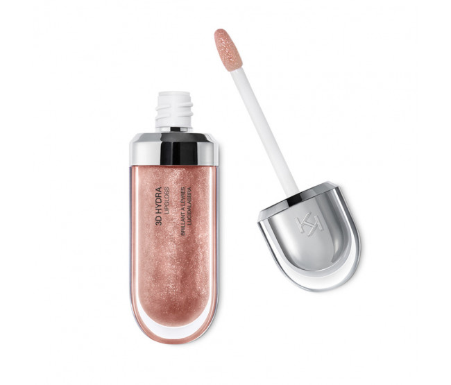 A embalagem contemporânea se destaca pela tampa metálica com logo KK estampado na lateral. O aplicador de varinha macia é projetado para acentuar a textura do brilho e delinear com precisão os lábios.