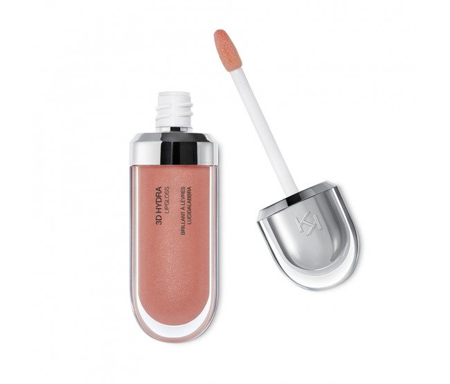 A embalagem contemporânea se destaca pela tampa metálica com logo KK estampado na lateral. O aplicador de varinha macia é projetado para acentuar a textura do brilho e delinear com precisão os lábios.