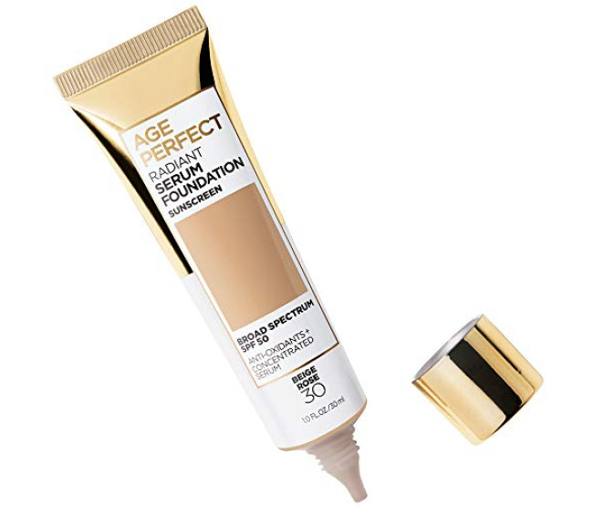 Age Perfect da L'Oreal Paris Cosmetics, a Radiant Serum Foundation é uma base cuidadosamente formulada que fornece à pele vitamina B3 e soro hidratante, além de ser adequada para peles sensíveis. A Radiant Serum Foundation equilibra o tom, fornecendo uma cobertura natural e radiante que não se ajusta às linhas. Todos os benefícios de uma base radiante com a vantagem adicional de hidratação durante todo o dia e SPF 50. Formulado com SPF 50, vitamina B3 e soro hidratante para hidratação durante todo o dia Evens tone e fornece um acabamento natural e radiante A fórmula leve não se estabelece em linhas adequadas para pele sensível, testada sob controle dermatológico e 30 tons radiantes não comedogênicos