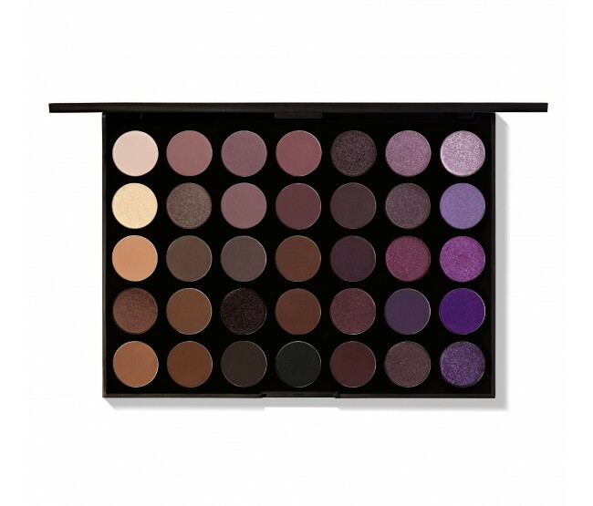 Paleta de sombras da marca Morphe com 35 opções de cores.