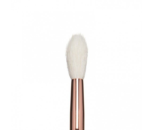 Pincel formato cônico, indicado para alongar o esfumado ou aplicar iluminador de forma precisa.