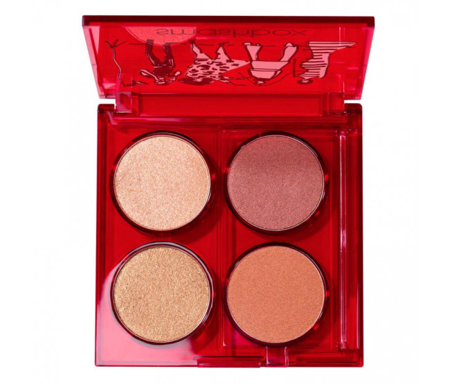 Reproduza seus recursos com esta versátil paleta de maquiagem para bochechas e olhos. Possui 2 blushes de massa luminosos e 2 iluminadores em pó radiantes que podem ser usados sozinhos ou em camadas para criar um brilho personalizado. Esta paleta de bochechas é selecionada com uma variedade de tons de champanhe, malva, bronze e coral inspirados nas férias, que são aveludados, misturáveis e suaves sem enfatizar a textura da pele.