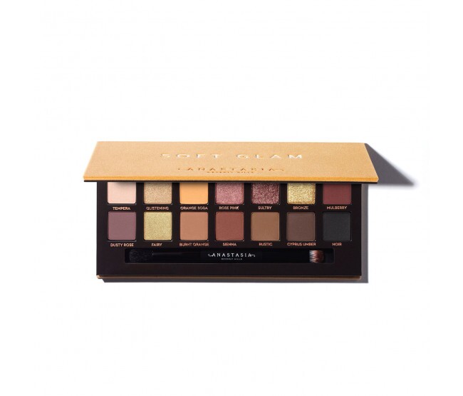A Anastasia Beverly Hills Soft Glam Eyeshadow Palette é uma paleta de sombras para dia e noite, com 14 tons incluindo foscos e com brilhos.