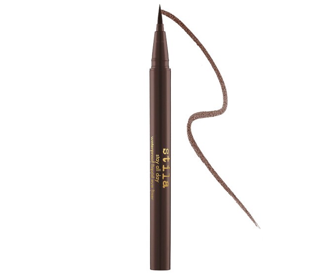 Delineador líquido à prova d'água de fácil aplicação que permanece durante todo o dia.