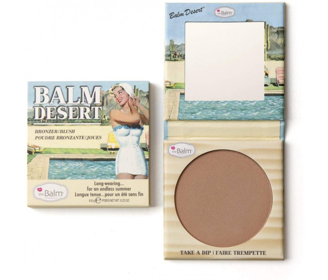 the Balm Desert é um bronzant e blush. Ele permite que você conquiste uma sensação natural de "beijada pelo Sol" com bastante praticidade. the Balm Desert é resistente e dura por um longo tempo. Assim, você fica com aparência de bronzeada durante todo o dia! -