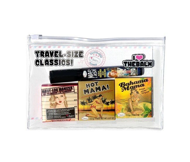 Viajantes frequentes, alegrem-se! A theBalm criou versões em tamanho viagem dos nossos best-sellers pela metade do preço! Este conjunto de quatro peças inclui uma máscara de cílios Mad Lash em tamanho normal e Mary Lou Manizer, Hot Mama e Bahama Mama em tamanho viagem. Os designs inteligentes e práticos para viagem facilitam levar sua rotina de maquiagem para qualquer lugar ou testar um produto antes de se comprometer com o tamanho normal. Se você gosta de beleza para levar, estes produtos são para você!